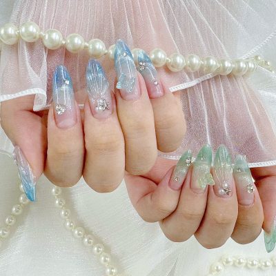 今日も出勤‼️ ネイルを夏っぽくしたくてマーメイドネイルに変えたよ〜💅 女の子ページへ https://www.prds.net/a_shop_detail/g_11238/n_shop_girl_d…